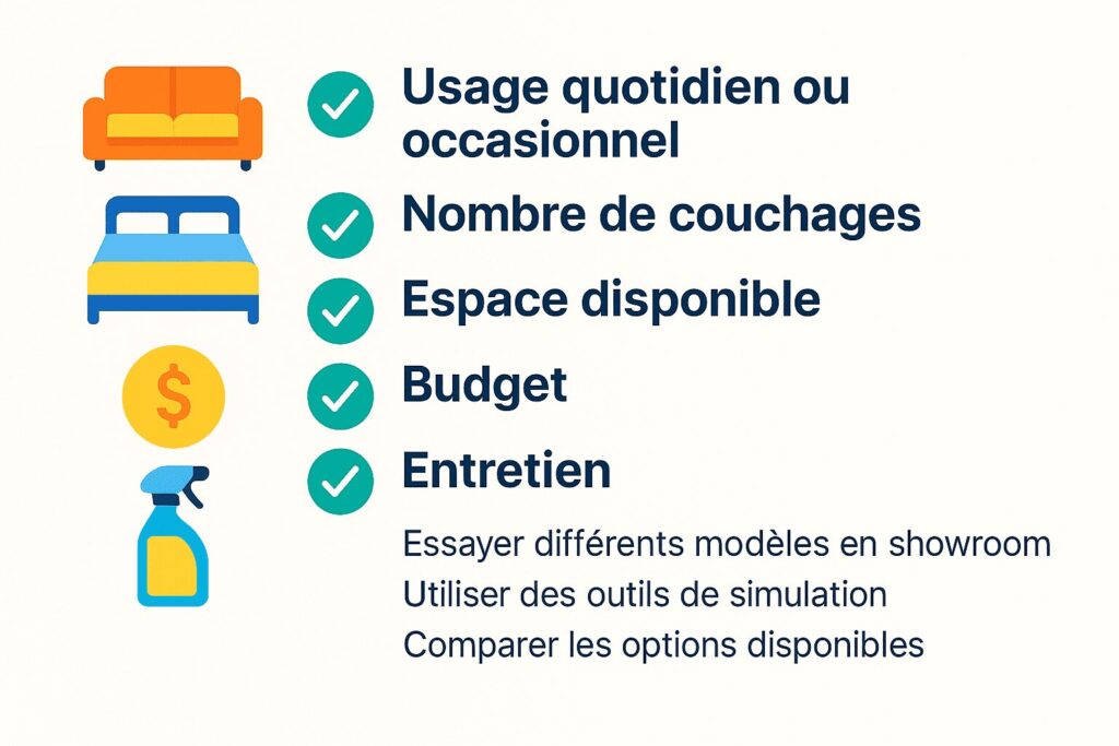 - L’enjeu : adopter un canapé convertible, c’est choisir la durabilité (matériaux solides, confort modulable) et une vraie expérience personnalisée, loin de la banquette passe-partout remplie de regrets.