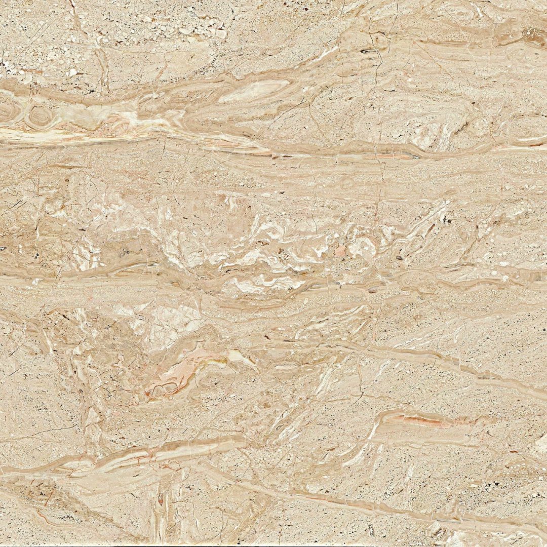 Ce travertin est disponible en différentes teintes. Ses aspérités sont également nombreuses et il contient une grande quantité de matière de remplissage.